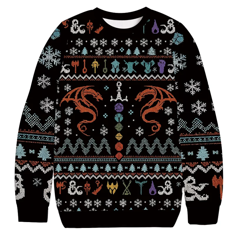 DnD Dragon Dice Weapon Ugly Christmas Sweatshirt Funny Tabletop Gamer Holiday Jumper