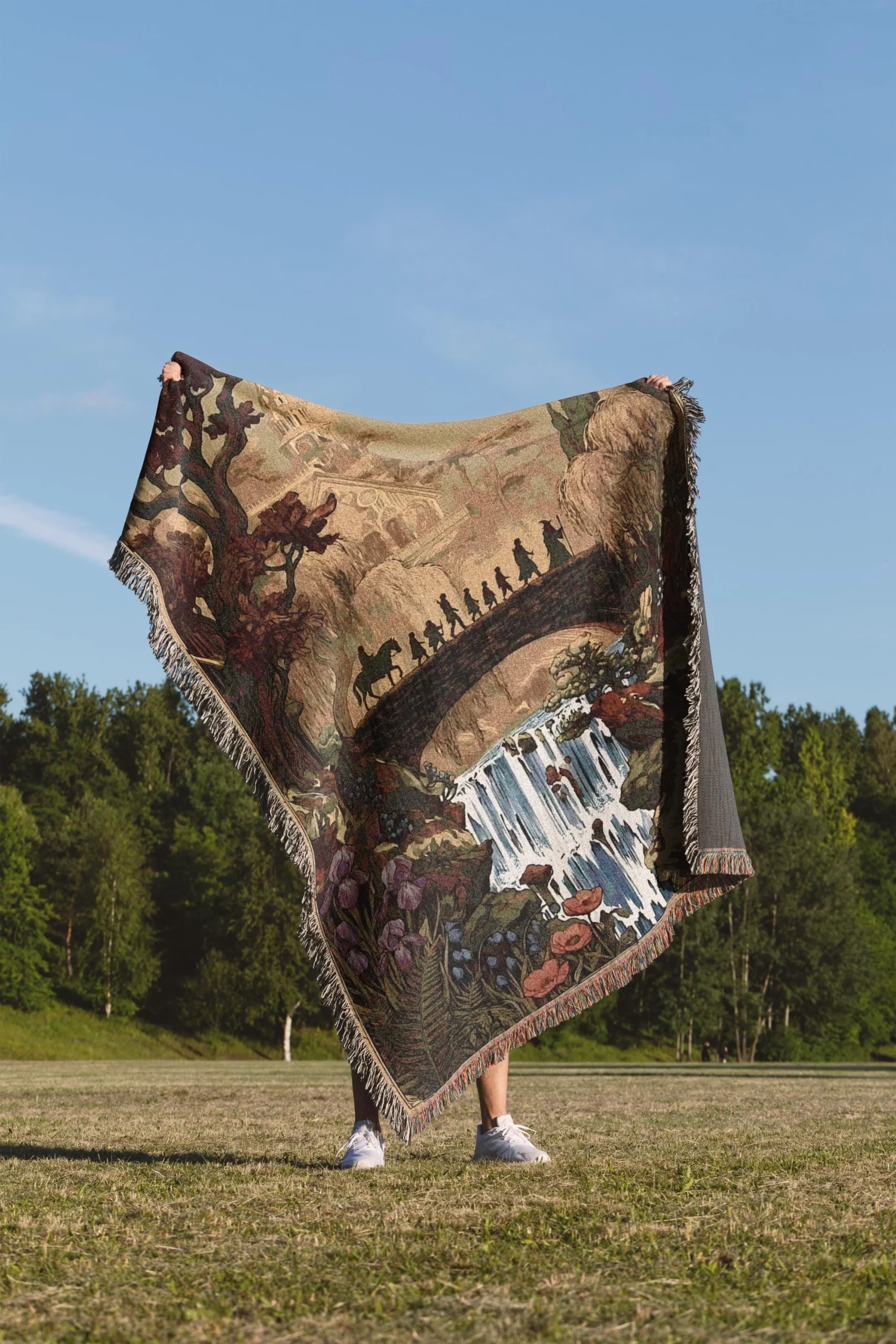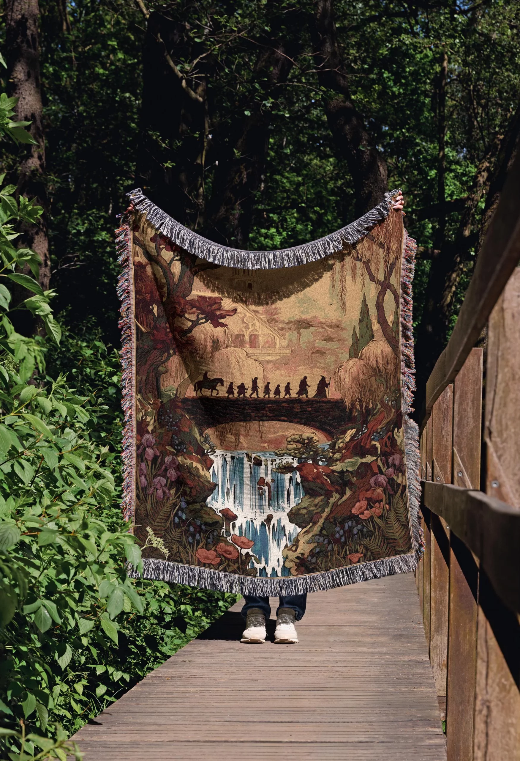 Fantasy Fellowship Journey Woven Blanket: Elven City Landscape Tapestry Book Gift