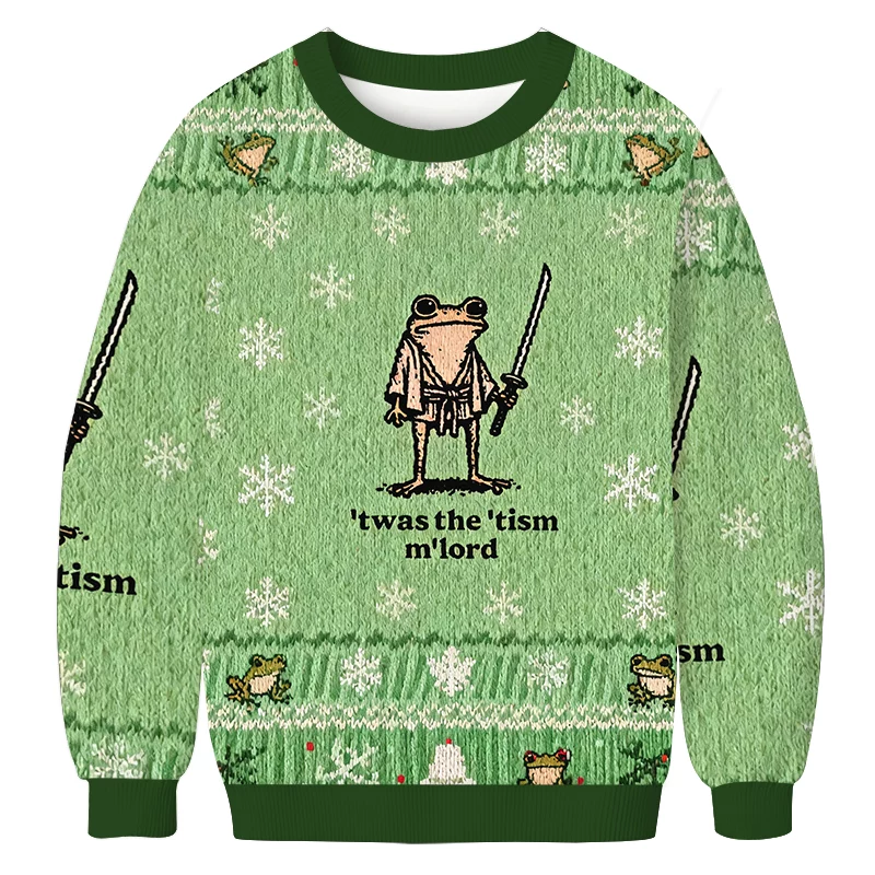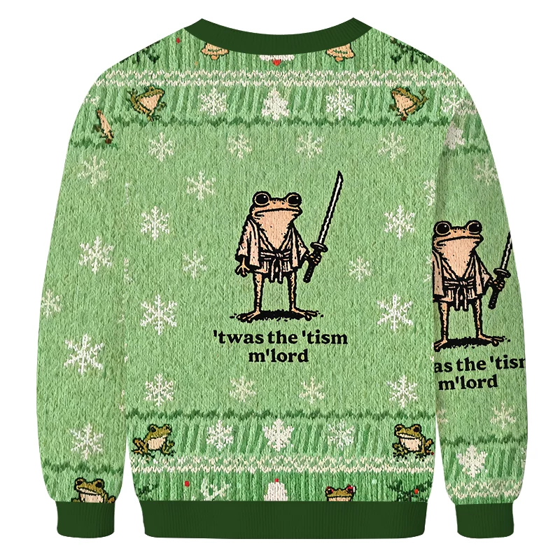 Focused Samurai Frog Ugly Christmas Sweatshirt Funny Japanese Warrior Jumper