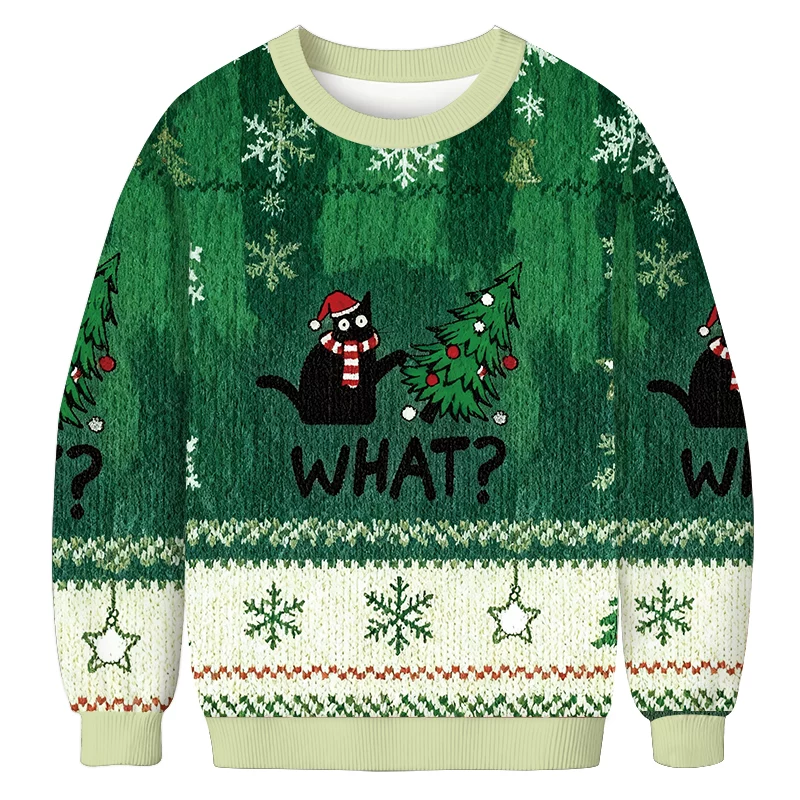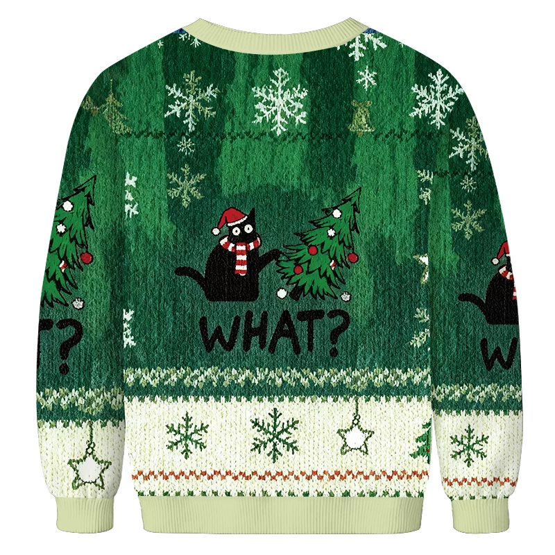 Funny Black Cat Meme Ugly Christmas Sweatshirt Viral Feline Holiday Jumper