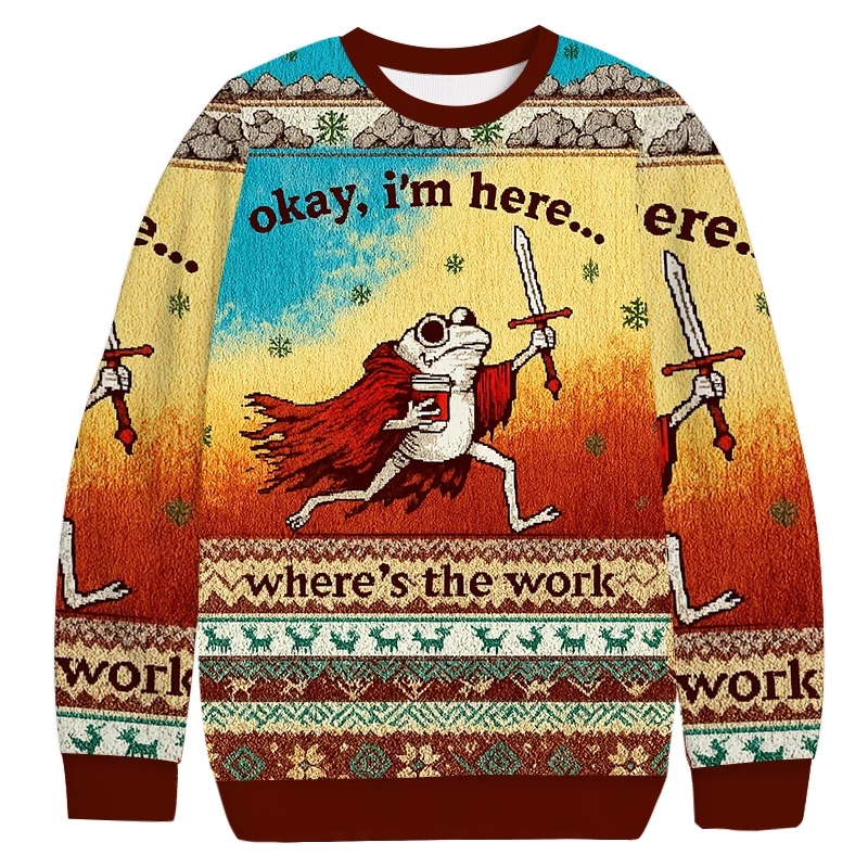 Funny Frog Worker Ugly Christmas Sweatshirt Office Humor Animal Holiday Jumper
