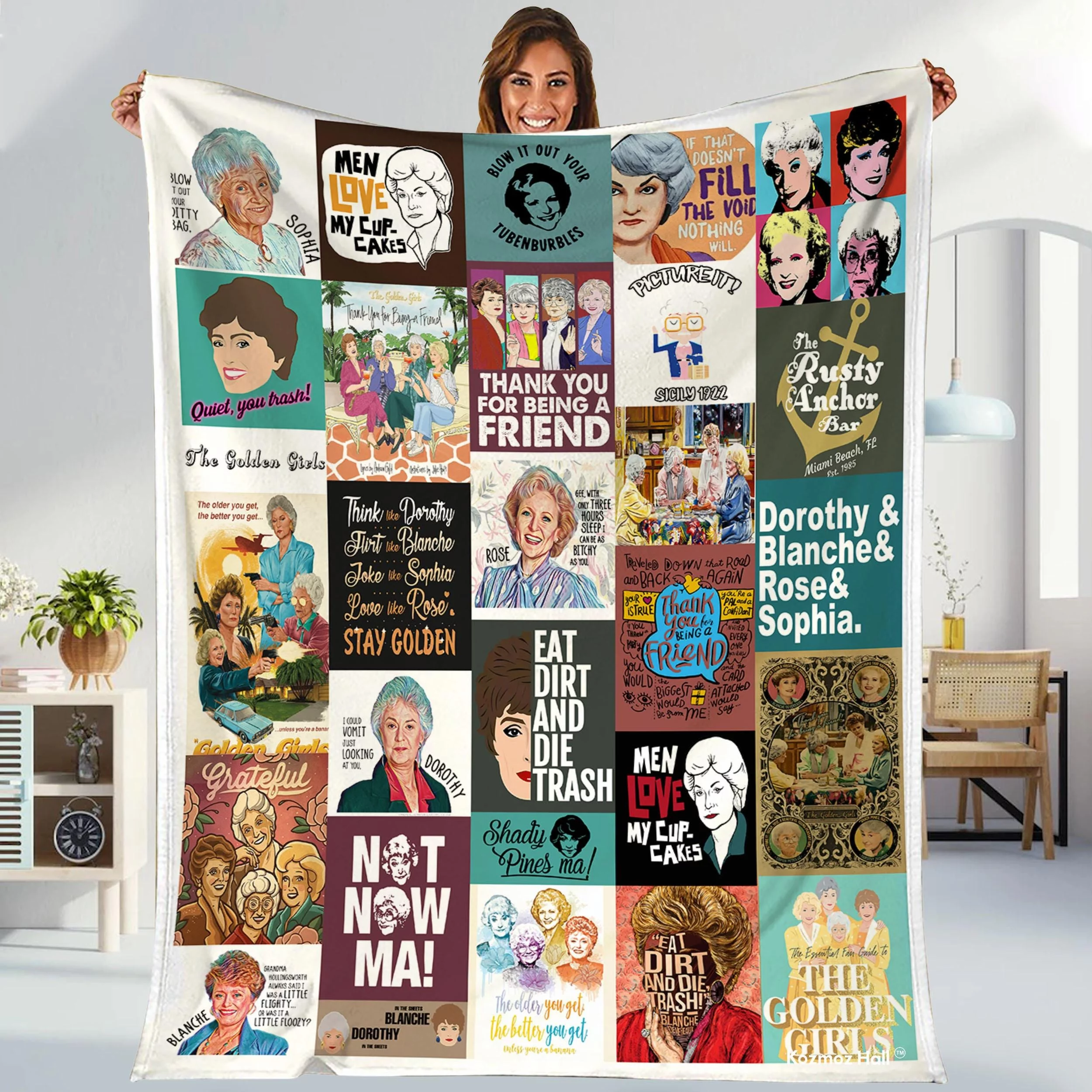 Golden Girls “Stay Golden” Fleece Blanket – Vintage 80s TV Sitcom Throw Dorothy Rose Sophia Blanche Art Funny Christmas Gift 2025