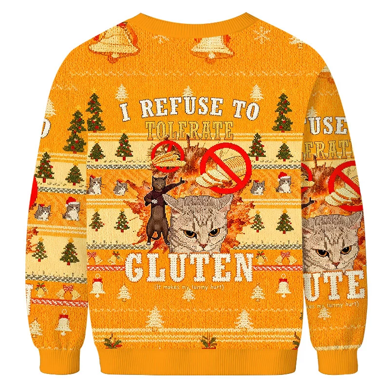 “I Refuse To Tolerate Gluten” Funny Christmas Ugly Sweatshirt Gluten-Free Holiday Jumper