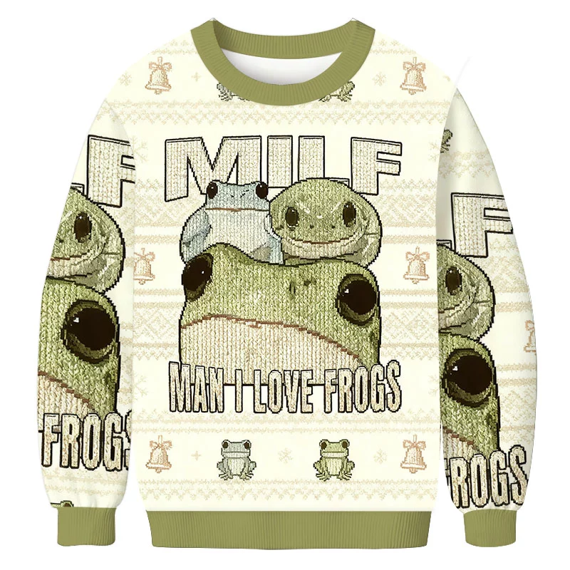 “Man I Love Frogs” Funny Ugly Christmas Sweatshirt Cute Amphibian Lover Holiday Jumper