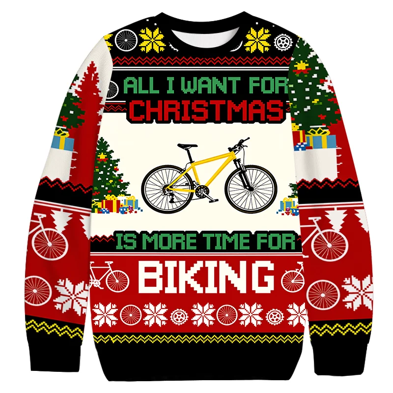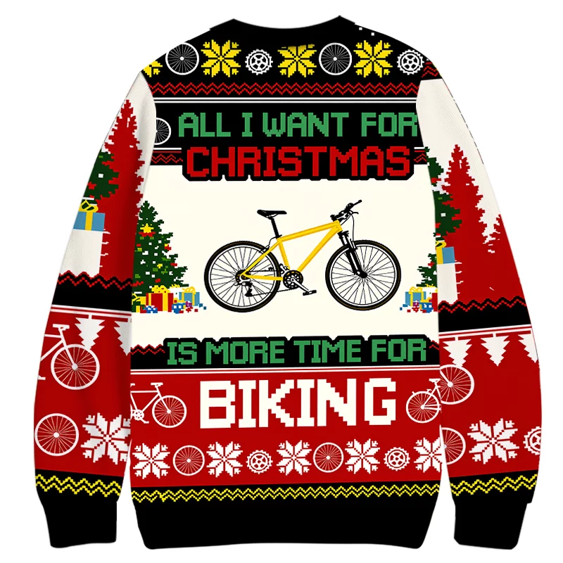 “More Time For Biking” Funny Ugly Christmas Sweatshirt Cycling Fan Holiday Jumper