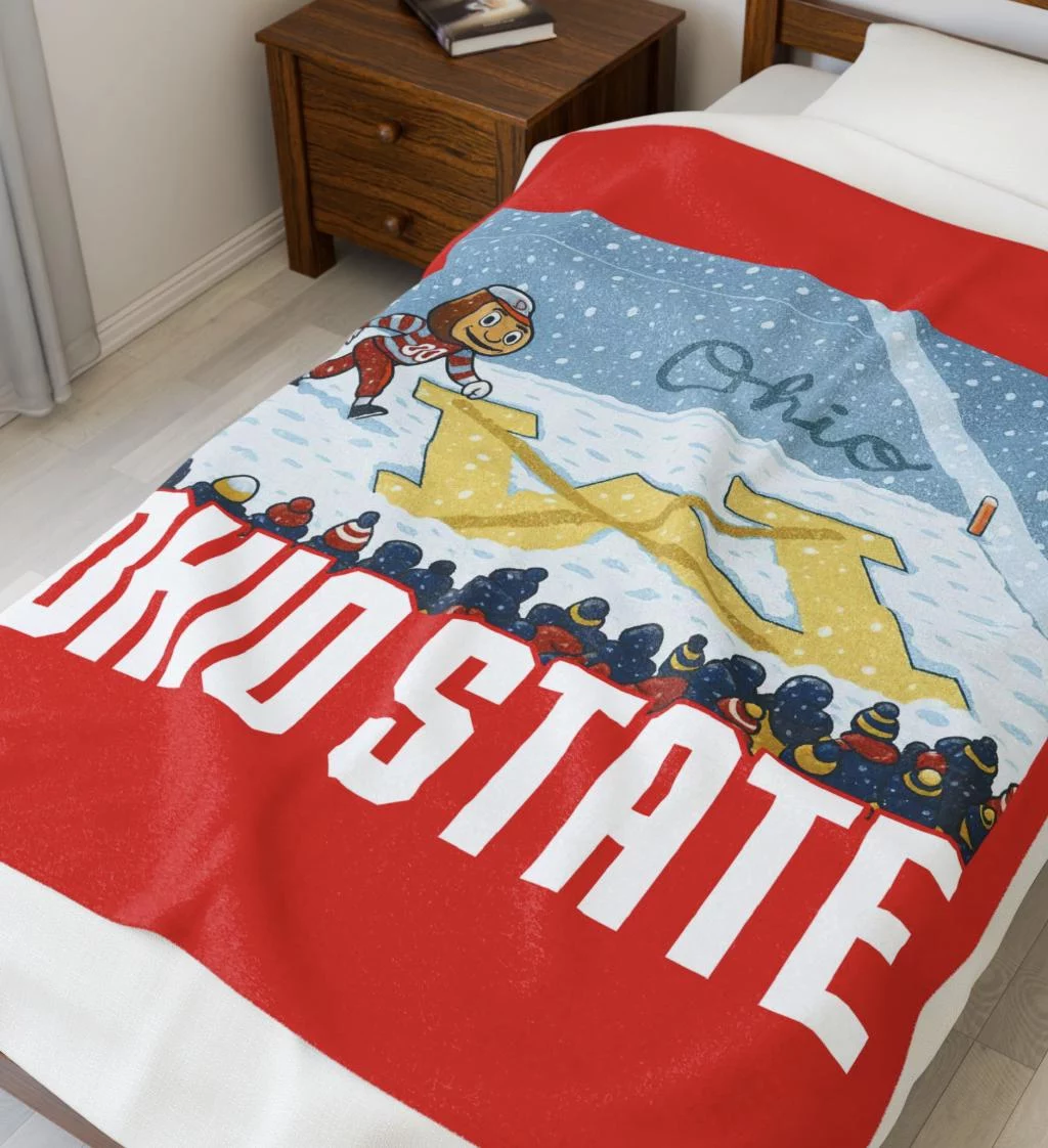 Ohio Football Pride Blanket – Scarlet And Gray Team Spirit Throw Funny Columbus Game Day Gear Cozy Stadium Fleece Gift For Fans