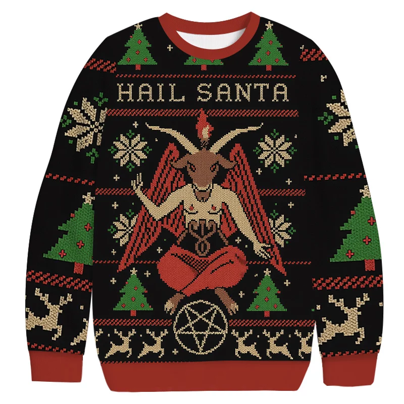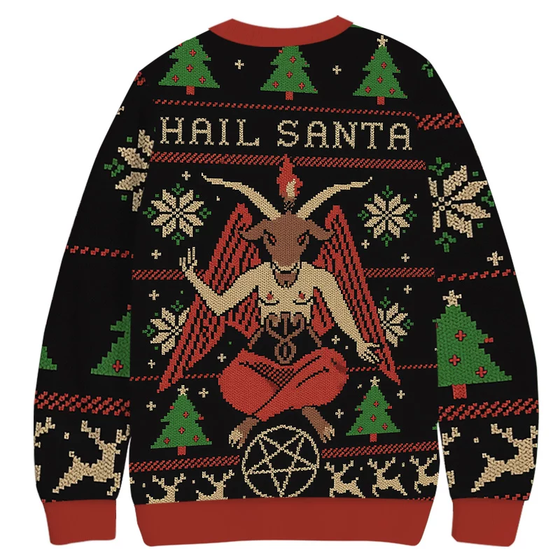 “Satan Claus Hail Santa” Funny Ugly Christmas Sweatshirt Dark Humor Anti-Christmas Jumper