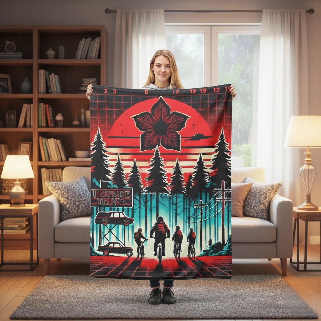 Stranger Things Inspired Flannel Blanket – Lightweight & Cozy All-Season Throw For Sofa Decor