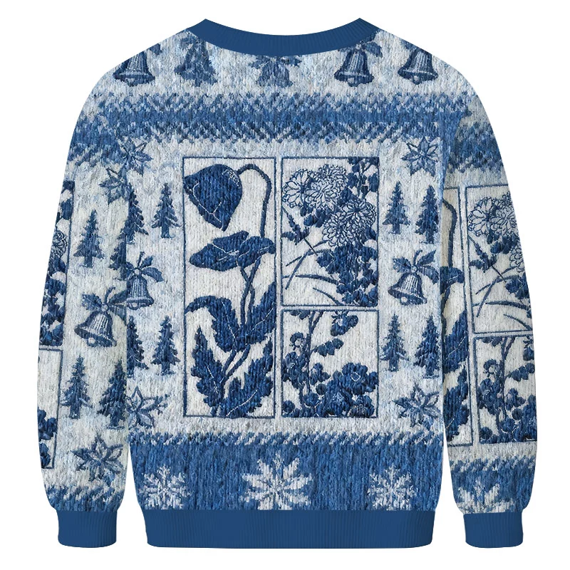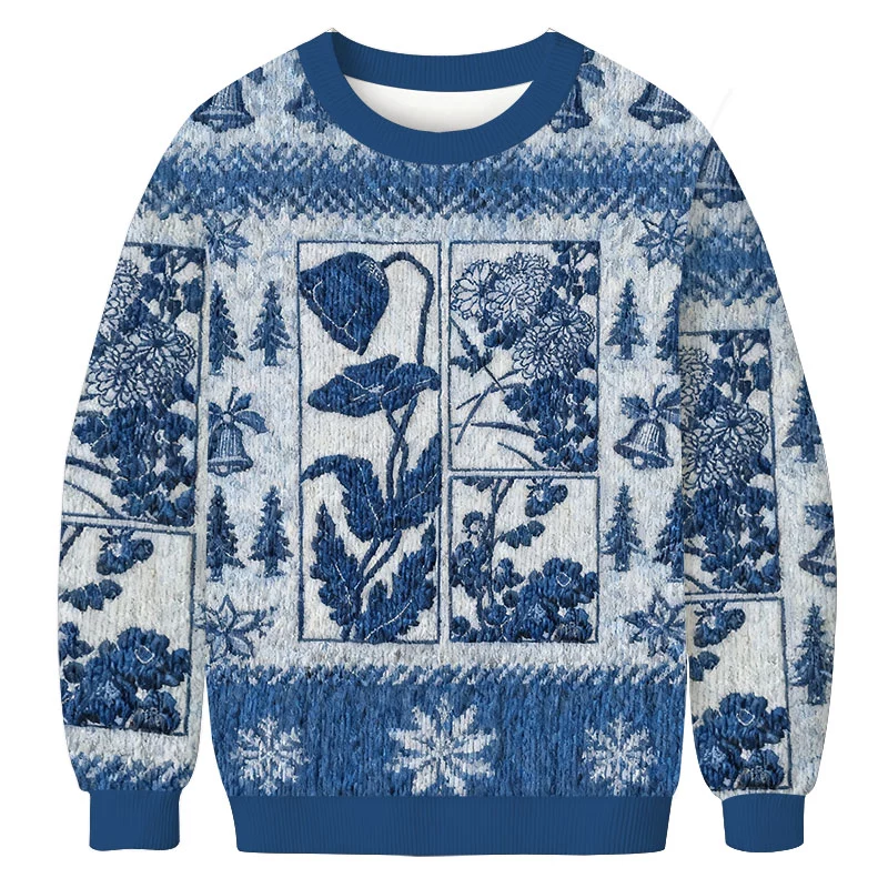 Woodcut Flowers Vintage Ugly Christmas Sweatshirt Botanical Art Holiday Jumper